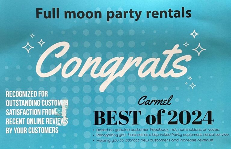 contact@fullmoonpartyrentals.com 317-798-6882 Hours: Mon - Fri 9am - 5pm | Sat - Sun 10am - 2pm