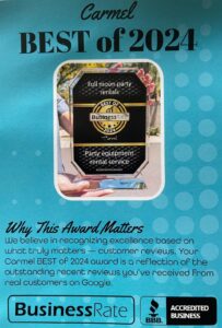 Proudly holds a perfect 5-star rating from 85+ happy customers. We're Carmel, Indiana’s most customer-centric party rental company.